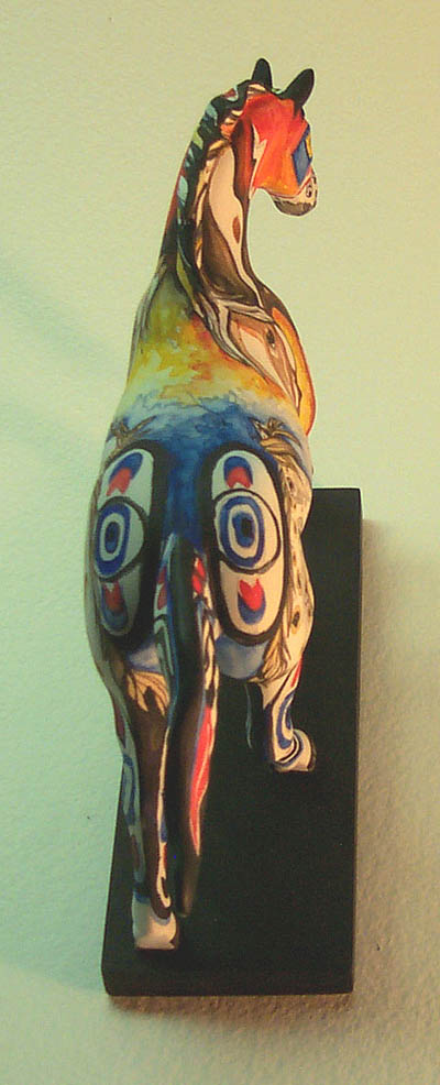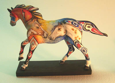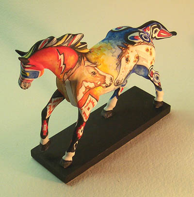 I do many original 2-dimensional and 3-dimensional ponies for people — often to commemorate a special horse or theme. Petroglyph Pintos™ is an example. Please call 1 310 944 4843, Skype lynnbean, or email lynnbean@lynnbean.com to discuss your potential commission project.